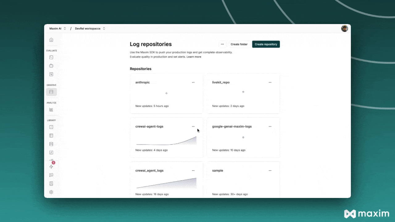 Maxim will automatically pick upMAXIM_API_KEY and MAXIM_LOG_REPO_ID from your environment variables.